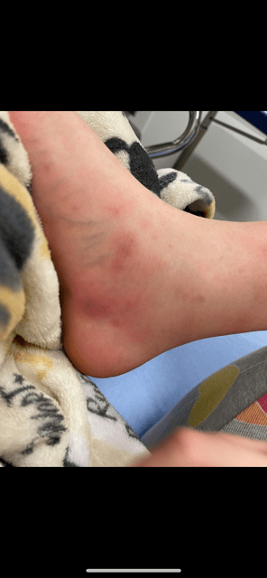 Leah ended up taking her daughter to the ER where she got steroids and started on antibiotics as it looked like the spots had turned into cellulitis on her feet.